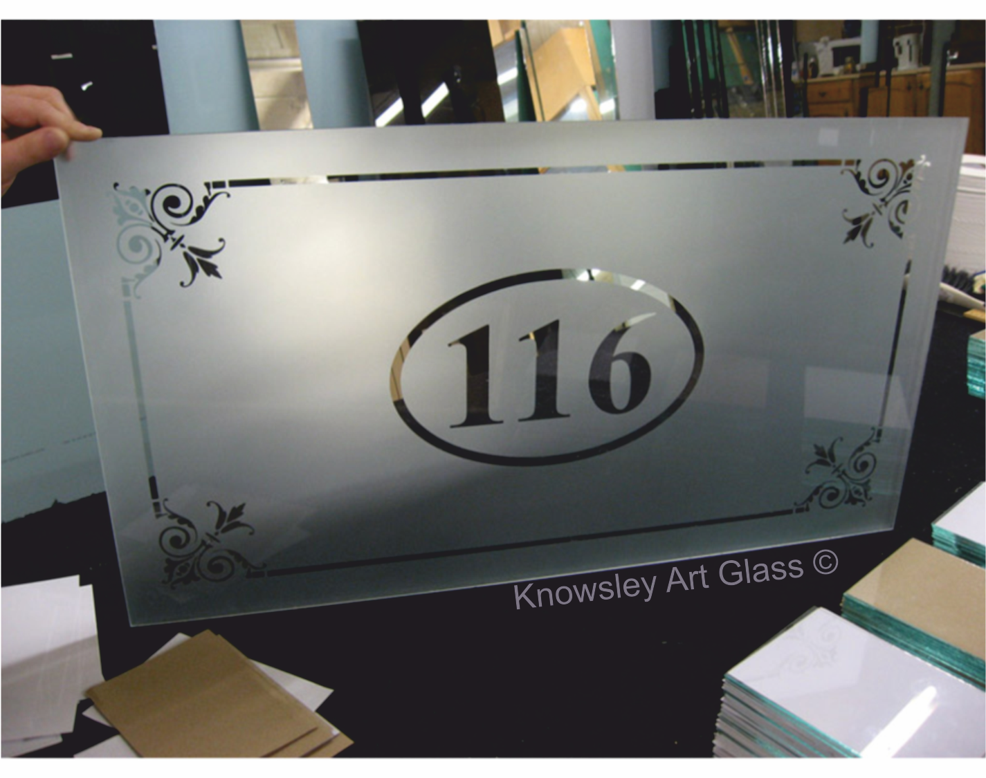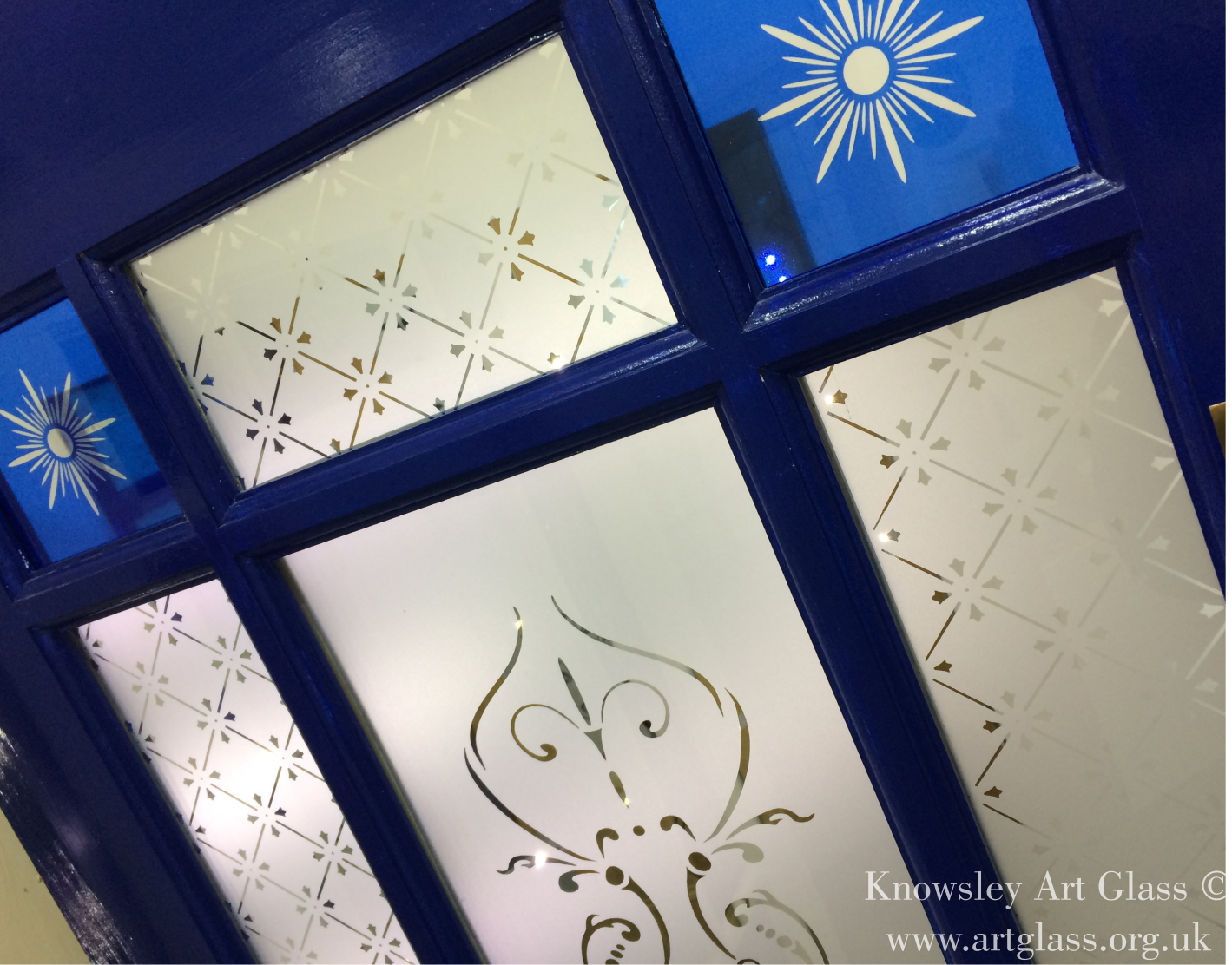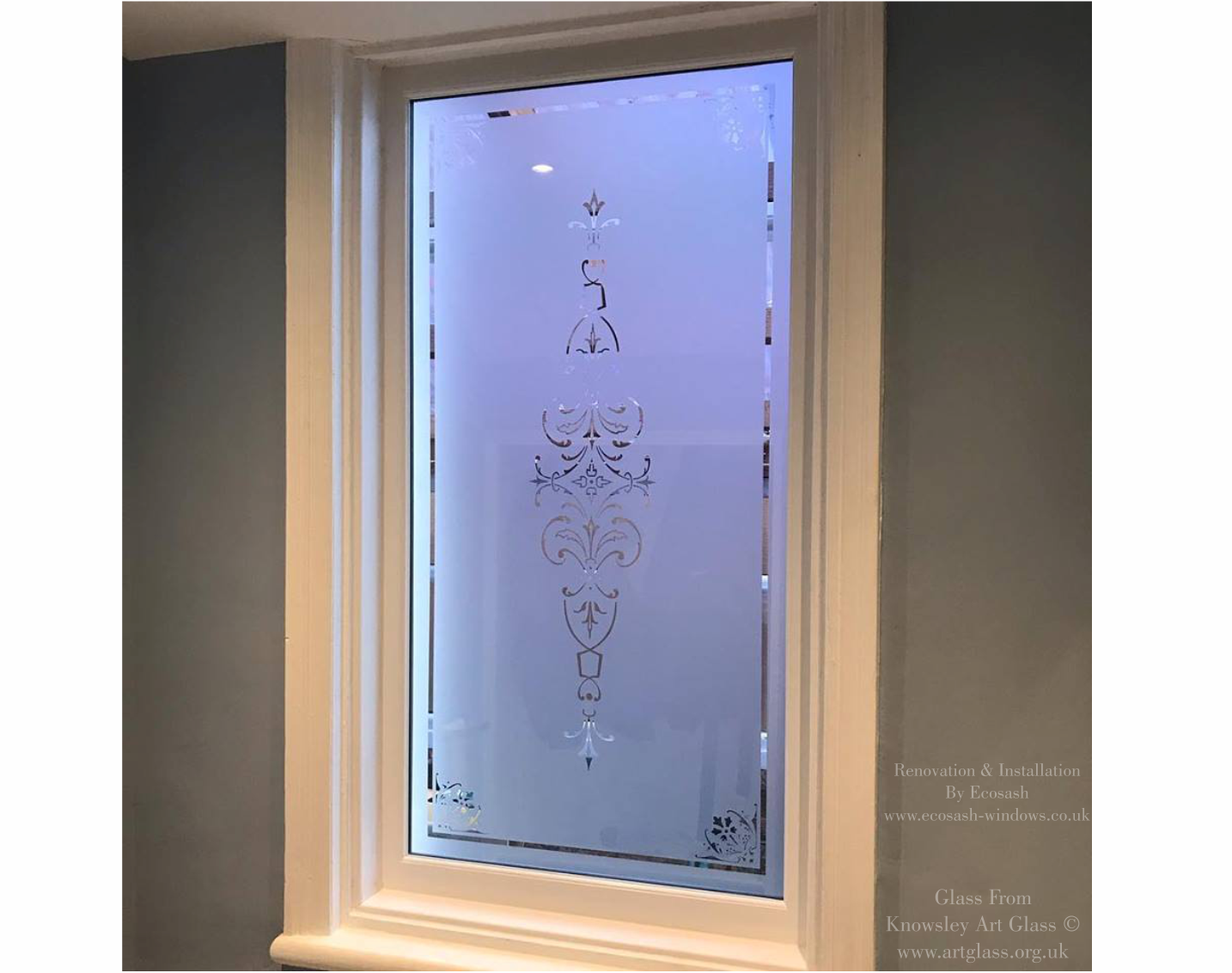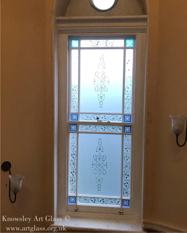 Welcome to the Knowsley Art Glass etched glass gallery, a showcase of previous etched and frosted glass panels we have created for customers across the UK.