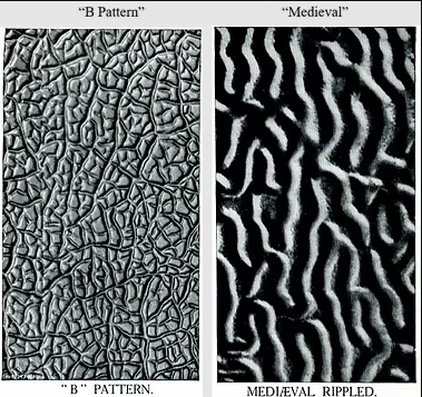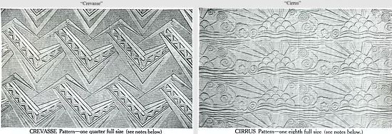The patterns listed include Arctic large and small, three sizes of Muranese, three sizes of Morocco (including “pinhead” size), Cretan, Oceanic, Rose, Maltese, Japanese, Kaleidoscope, Rippled, Quilted, Persian, Shell and Arabesque. Only four of the patterns are illustrated in the catalogue, as per below.